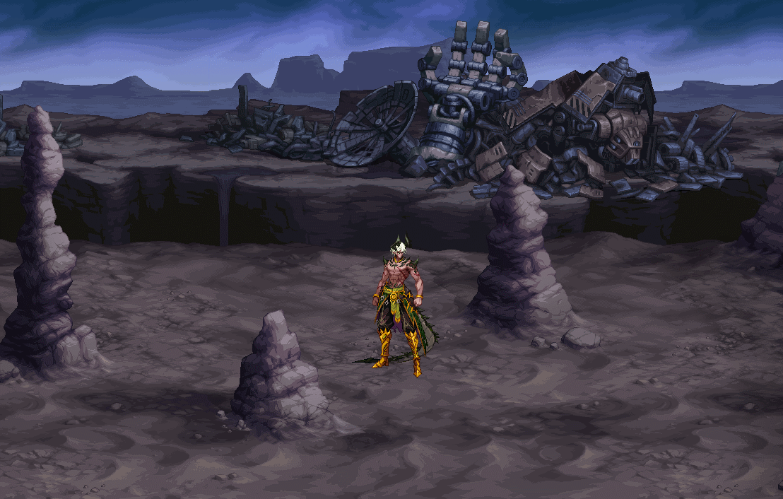 和以往只是从龙王巴卡尔身上得到无聊的命令不同,利特雷诺得到了寻找强大的陌生人这个命令,对即将到来的战斗感到兴奋的他来到了现在的无法地带的钢铁墓地,这里是利特雷诺让无数天界人称之为“兵器”的东西化为“废铁”的地方,他已经对虐杀被摧毁心血后咒骂他的天界人感到厌烦了