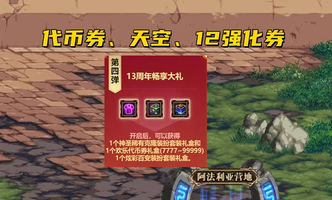 为什么说周年庆最值得大家期待?实打实的福利才是大家关心的重点,和以往类似,每年周年庆都会有4弹核心奖励,其中最值得一提的便是,代币券和天空套,当然还有聊胜于无的12强化券!